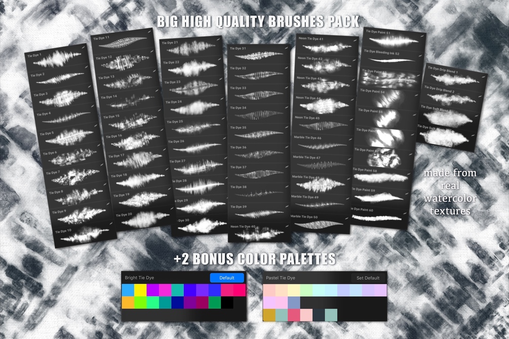 - 39 classic watercolor tie-dye brushes